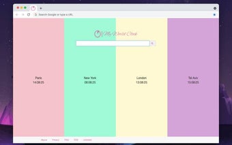 ساعة عالميتي هي إضافة لـ Chrome تتيح لك عرض الوقت في مدن مختلفة مثل باريس ونيويورك ولندن وتل أبيب، كل ذلك في مكان واحد مريح. تدمج هذه الإضافة بسلاسة مع علامة تبويب Chrome الجديدة، مما يوفر لك الوصول السريع إلى البحث على الويب وميزات أخرى مفيدة.